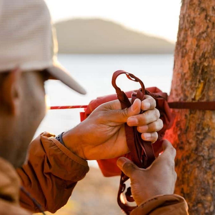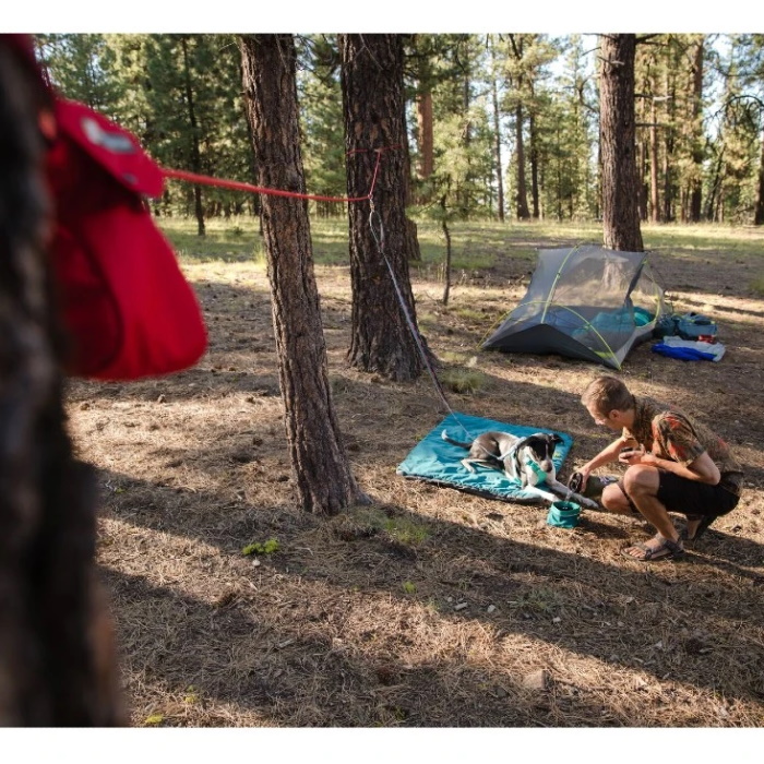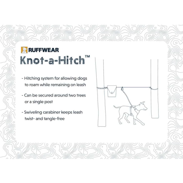 The Knot-a-Hitch includes a strong, kernmantle rope that can be set up between two trees or secured to a single post using Ruffwear-designed hardware and an easy-to-use tensioning system.