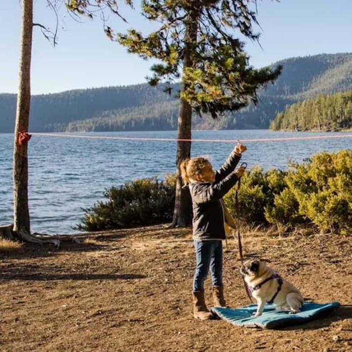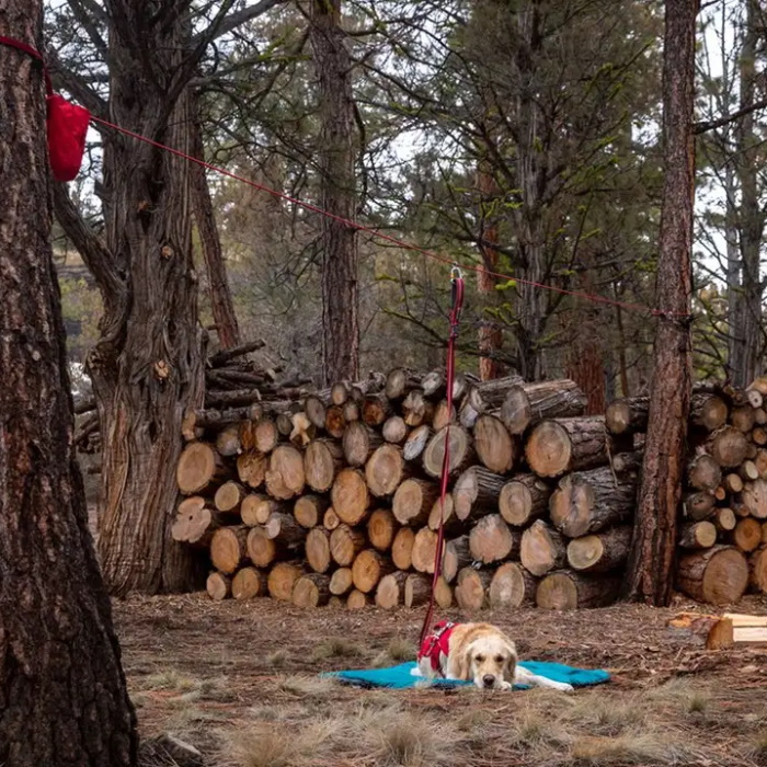Designed with car camping in mind, this comprehensive and intuitive system allows dogs to roam at camp while remaining on leash.