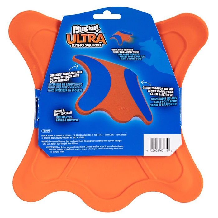 The Chuckit! Ultra Flying Squirrel takes flight with Chuckit!’s signature Ultra durability. Crafted with a rugged rubber exterior and lightweight proprietary foam, it’s designed to glide effortlessly through the air — and be gentle on your dog’s mouth during every catch.