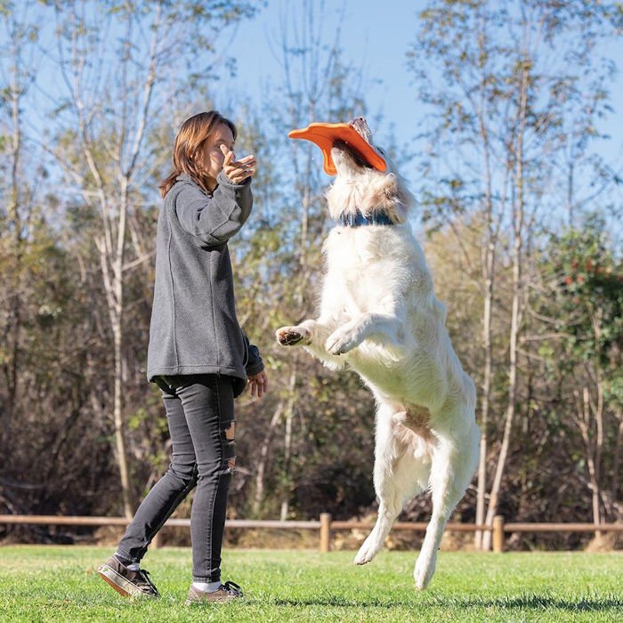 Perfect for games of fetch on land or in the water, this high-visibility orange flyer is easy to spot, easy to clean, and built for high-energy play.