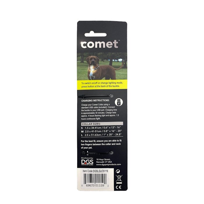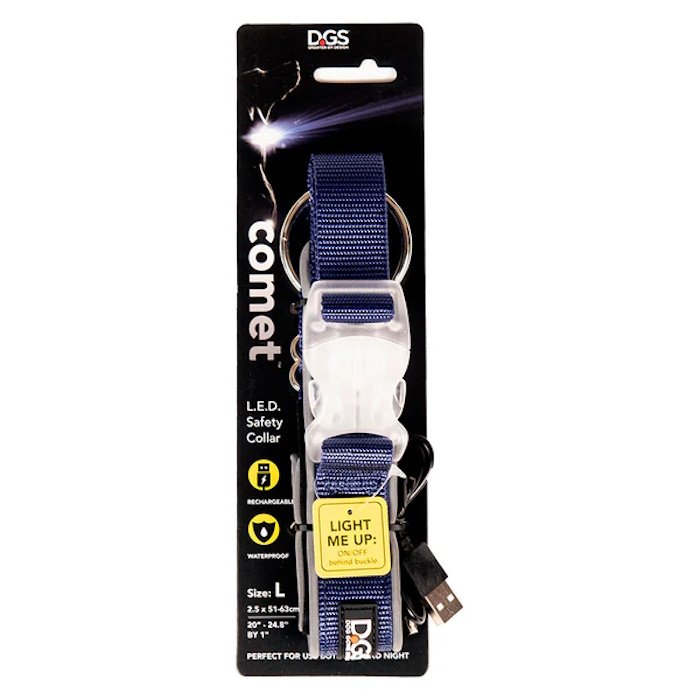 The DGS Comet LED Dog Collar features a bright LED light integrated into the strong buckle of a tough nylon collar with a heavy-duty O-ring, so it’s as functional as it is practical. Helps to keep your pooch safe at any time of day!