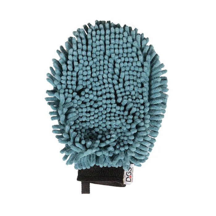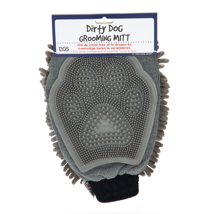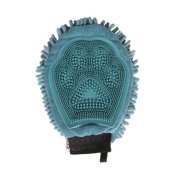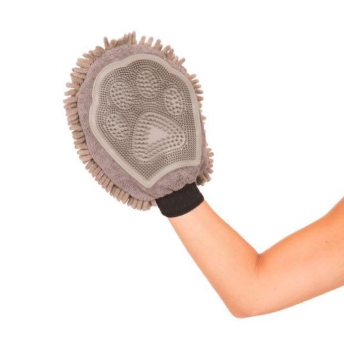 The soft and gentle hand mitt dries your dog and removes excess hair.