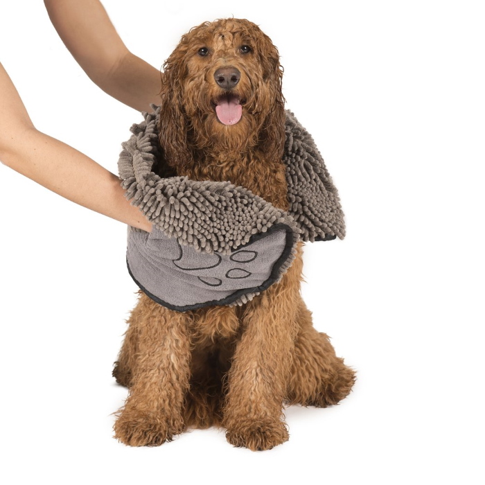 Dog Gone Smart’s Dirty Dog Shammy Towel has the highest absorbency (GSM –Grams Per Square Meter) of water, mud, dirt, and sand, allowing it to hold more mess than any other of the drying towels.