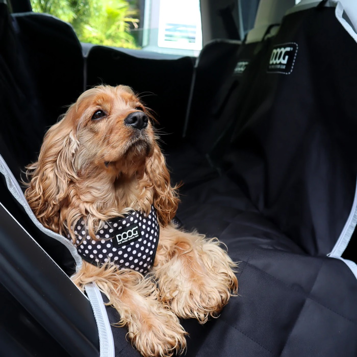 The new DOOG hammock car seat cover repels fur and dirt and protects your seats from dirty dog smells.