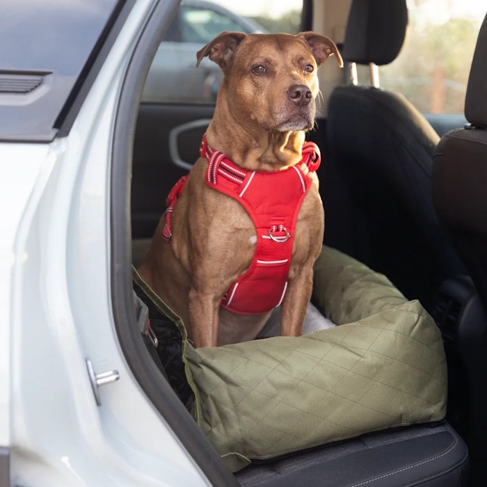 The larger pet booster seat is designed to keep larger breeds, or two dogs, secure and safe while on the move.