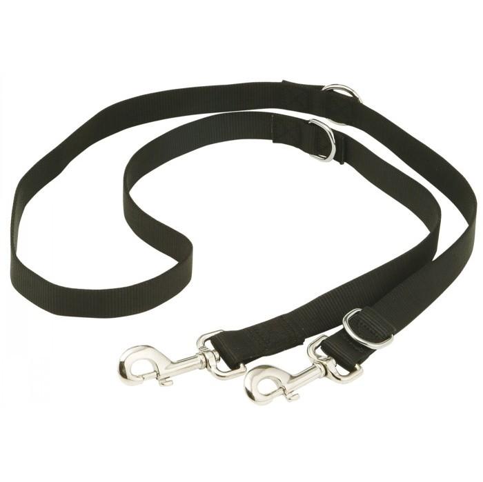 This fantastic, and extremely versatile, double ended dog leash can be used in a variety of ways. With 2 snap hooks and three D-Rings it can be used short or long. The premium nylon provides maximum comfort for the handler.