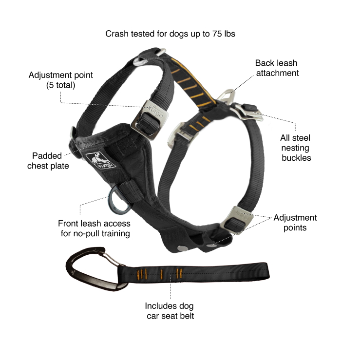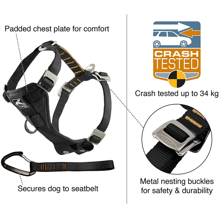 Innovative All-Steel Buckles – The Kurgo all-steel Nesting Buckle system is based on the time-tested harnesses of rock climbers and linesmen. The Nesting Buckles take a minute to learn, but are very easy to use.