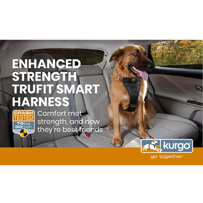 Easy to Use – The Kurgo Enhanced Strength Tru-Fit Smart Harness is quick and easy to put on. Simply, slip it over your dog’s head and then clip it around the midsection. Can be safely used with any vehicle seat belt using the included seat-belt loop.
