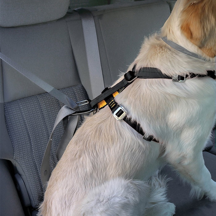 Protects dogs & drivers – Having your dog restrained within your vehicle, safely buckled keeps both, driver and dog safe.