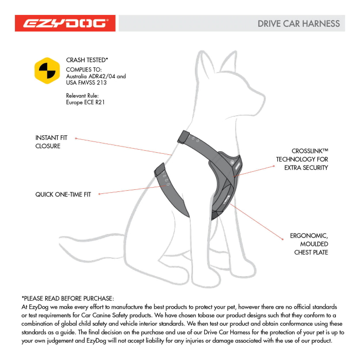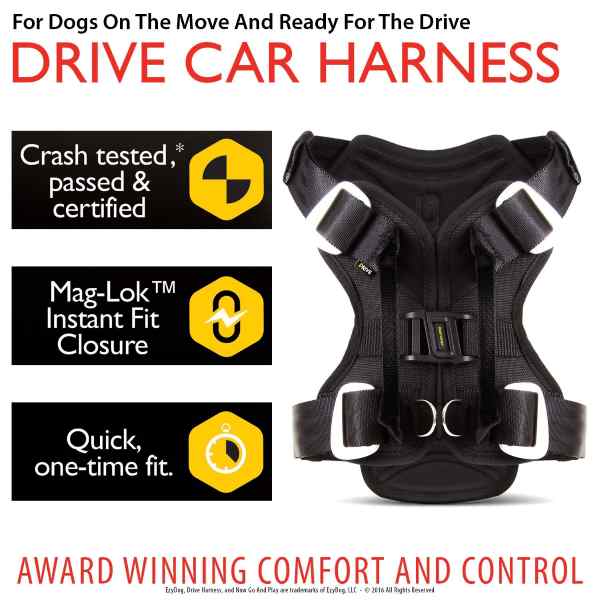The EzyDog Drive Dog Car Harness is a car safety harness for your dog. Both a travel harness and a walking harness, your dog is secured whilst in transit and ready for the drive.