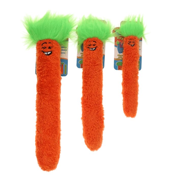 The Guru Fry Guys squeaker dog toys are sticks with attitude! Crinkle, squeak, thrash and fetch with these eight big personalities while engaging dogs in stimulating play.