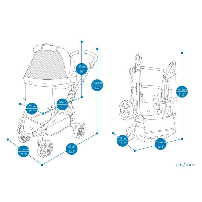 Stroller Dimensions: 82cm (length) x 51cm (width) x 106cm (height)