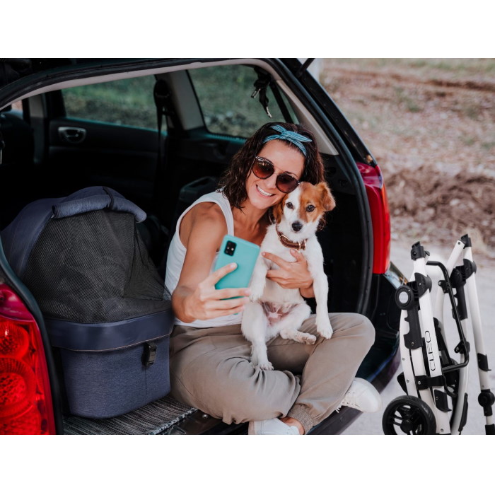 The CLEO is a lightweight and storage-friendly pet carrier and stroller that can be folded to fit in the back of your car or in a closet. Both the stroller frame and the basket are foldable and not bulky so that you don’t need a lot of space to store these items. The carrier can be folded to 2-inches (5 cm) tall for easy storage.