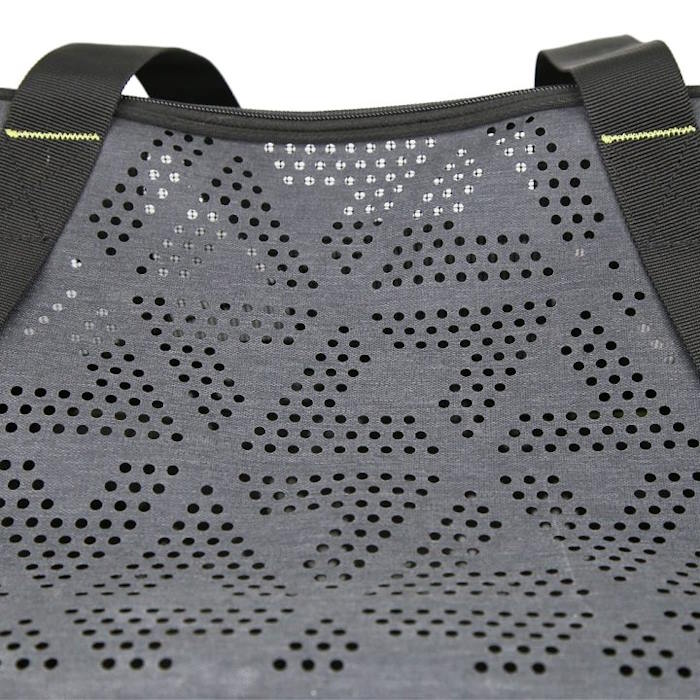 Its vintage allure is showcased through a perforated floral design, complemented by a striking colour contrast on the bottom cleaning pad. The robust TPU material ensures the bag’s shape is preserved, offering a capacious interior, further enhanced by a broad, adaptable entrance.
