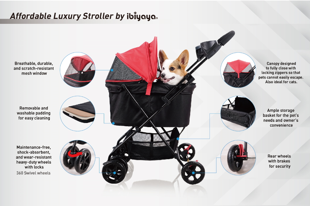Get the Ibiyaya Easy Strolling Pet Pram to make outdoor adventures more convenient and easier for your pet to enjoy!