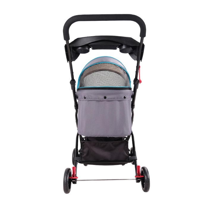 Mesh windows on the side of the basket and the sun canopy help give more ventilation and visibility. The storage basket on the bottom and cup holder/stroller organiser can be used to hold your personal items and pet care necessities while outdoors with your animal companion.