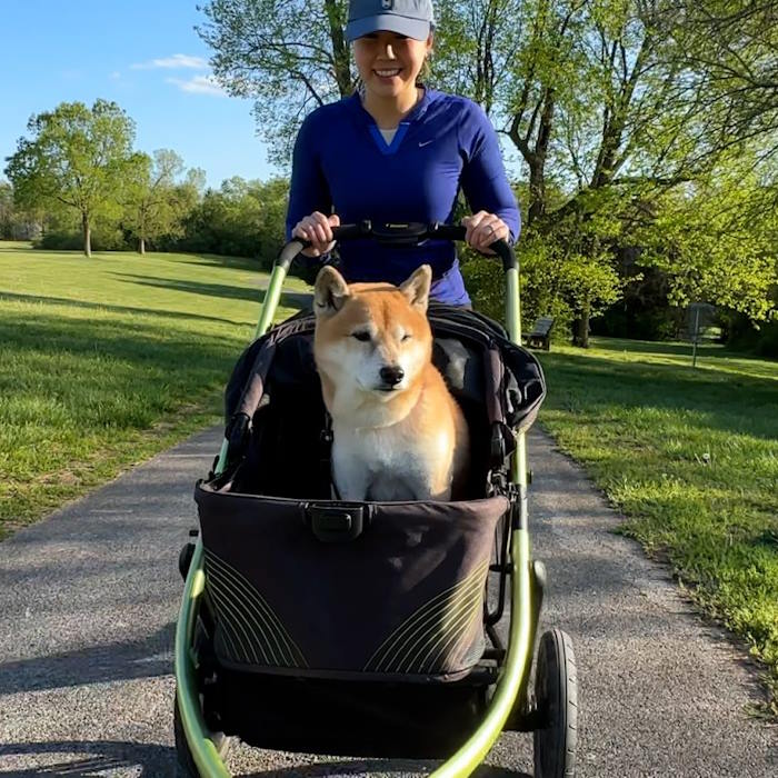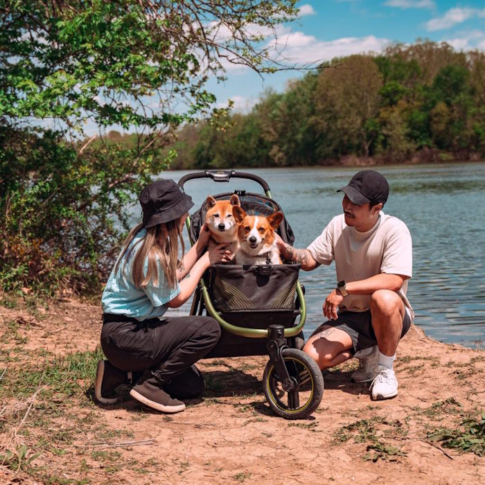You can take your pets with you every time you jog with this heavy-duty, all-terrain pet stroller!