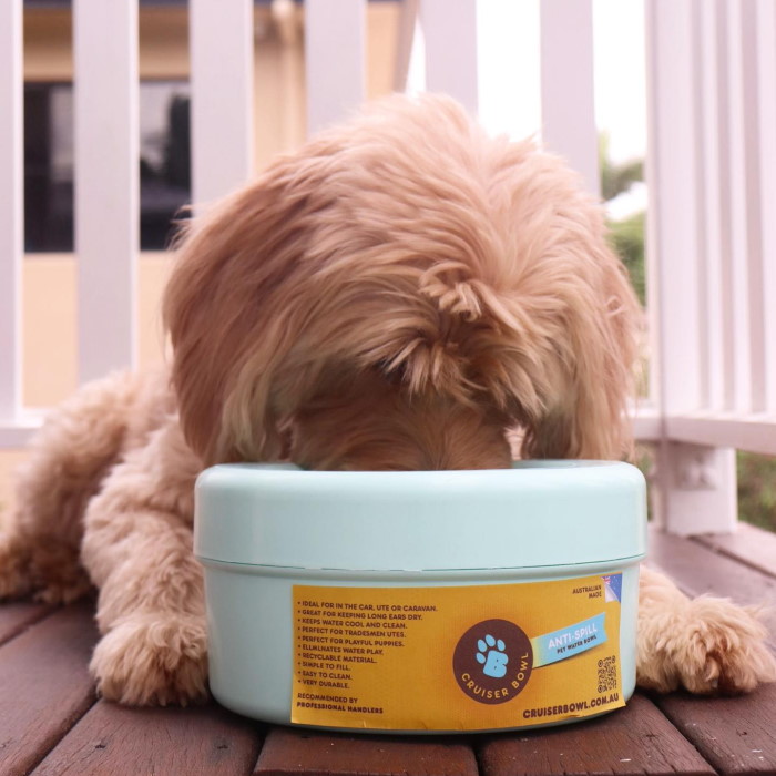 If your dog travels with you in the car or ute or just likes to dig the water out of their water bowl at home, the Cruiser Bowl non-spill dog water bowl is the solution!