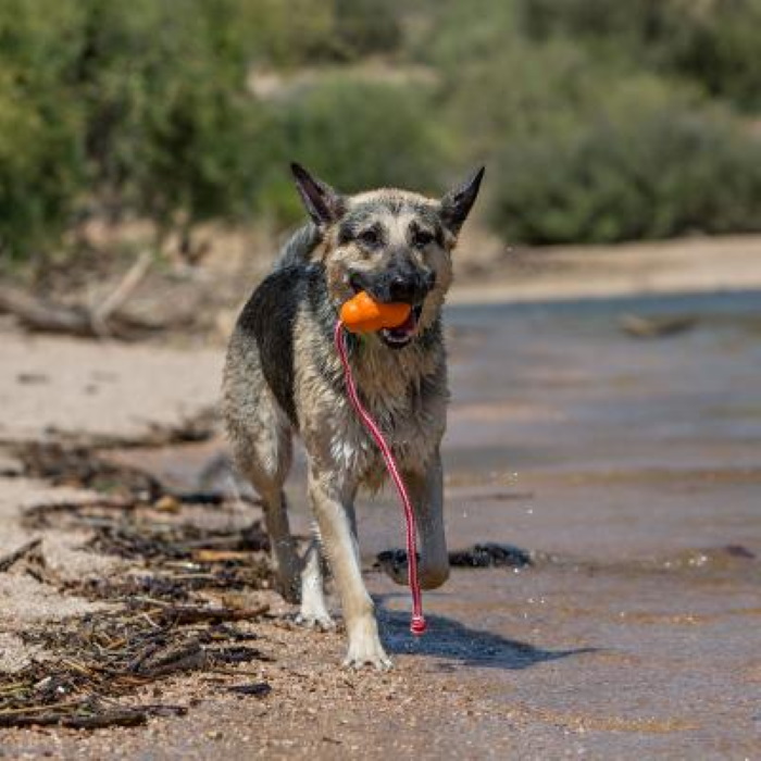 - KONG Classic shape with rope supports water retriever training