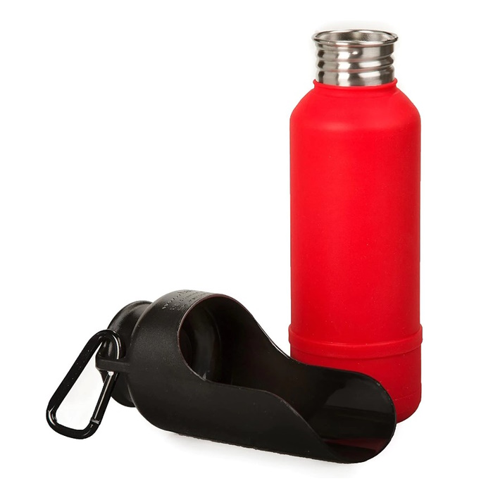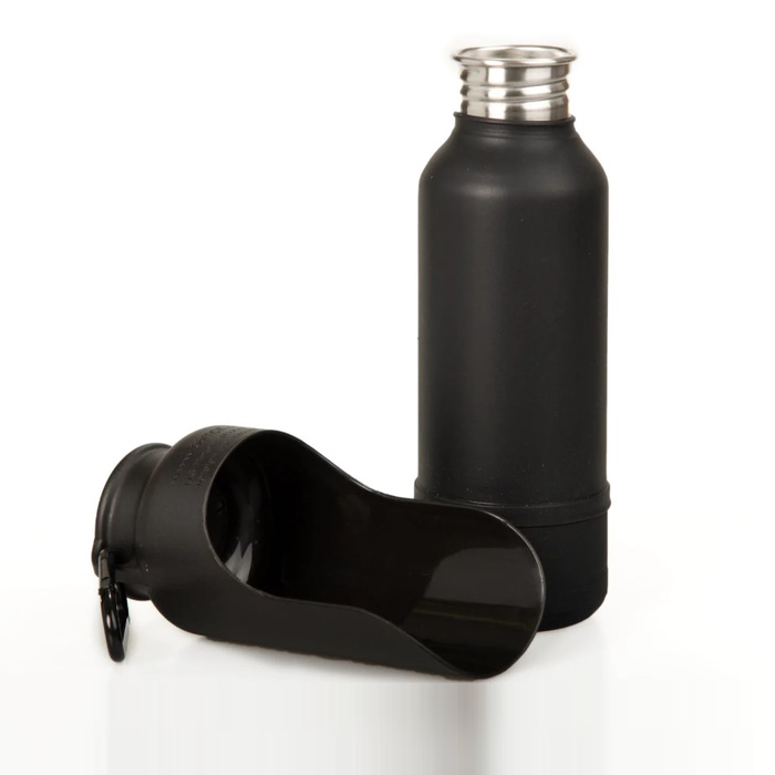 Featuring a smart, two-in-one design, this water bottle features a bottom that unscrews and doubles as a bowl.
