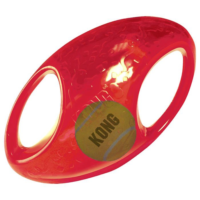 The KONG Jumbler Football is a two-in-one ball toy for twice the interactive fun.