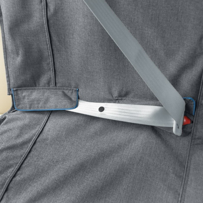 - Hook and loop opening to access seat belt and child car seat latch access