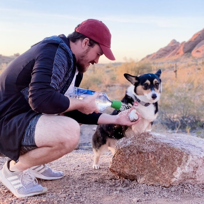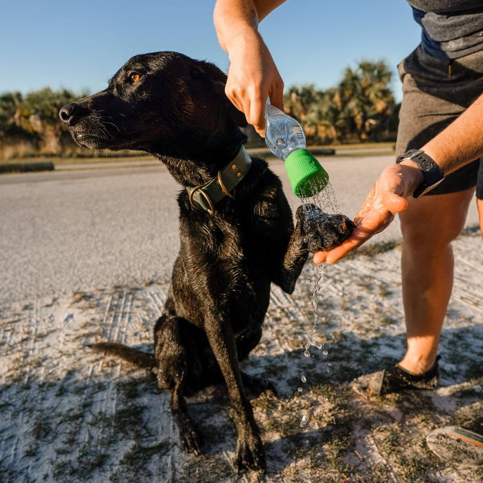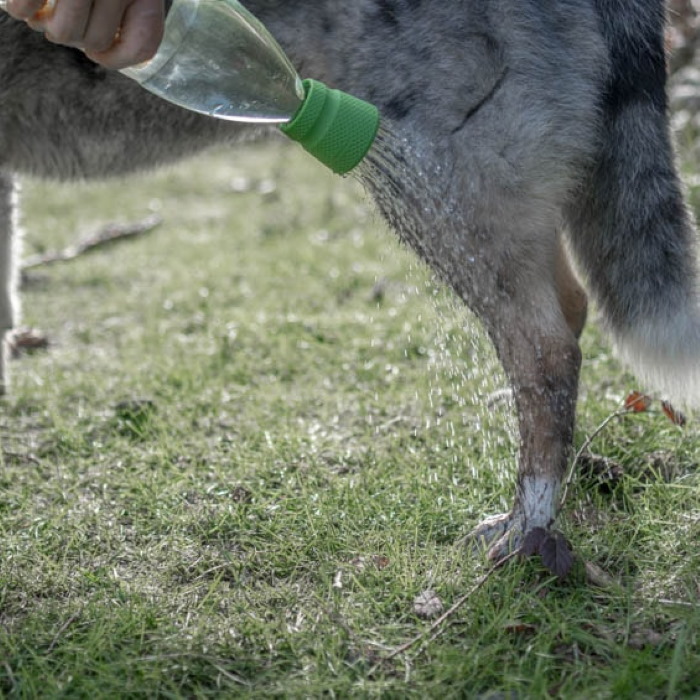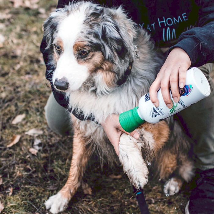 Keep that empty water or soda bottle and recycle it to act as a shower for your pup’s muddy paws. This is ingenious and also works great for a quick human camp shower when necessary, as well. One or two litre bottles are best since it can take a bit of water to rinse off sticky mud.