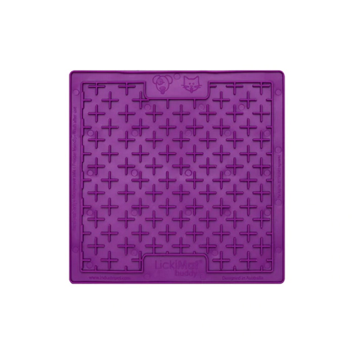 The LickiMat Buddy, with its cross maze design, is perfect for trapping thick sticky treats like peanut butter, soggy biscuits, treat pastes, homemade treats, and more.