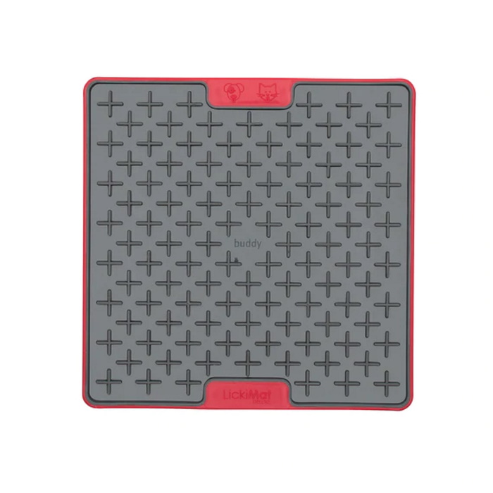 – LickiMat Buddy, with its cross maze design, is perfect for trapping chunky treats like mushy meat or fish.