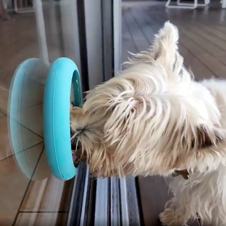 By spreading your pet’s favourite soft treat over the surface, you create a tasty fun game with them having seek out every morsel with their tongue. Freeze treats in summer for refreshing longer lasting entertainment.