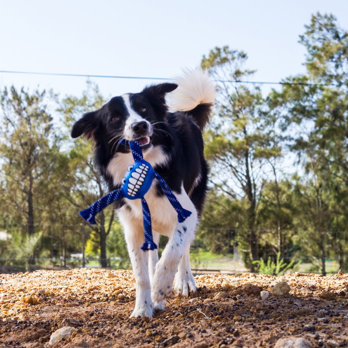 These balls combine a rubbery texture with dental rope to help clean your dogs tongue and teeth while they play.