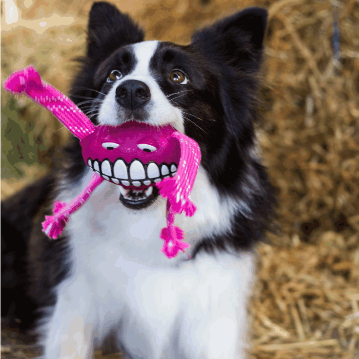 The Rogz Flossy Grinz is a throw and fetch toy that bounces and flies through the air erratically, creating a challenge for your dog.