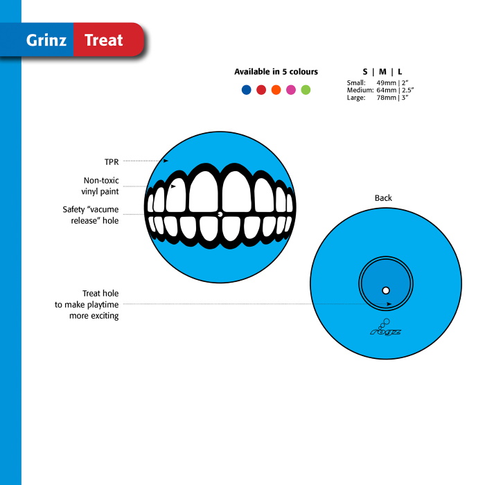 Fill the treat cavity with your dogs favourite treat and see the Grinz smile!