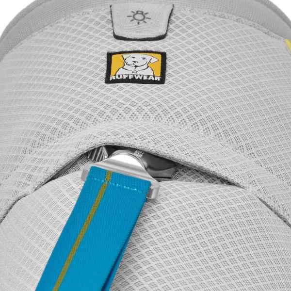 The integrated leash portal allows leash attachment when the Swamp Cooler is worn over the Ruffwear Front Range (or Web Master) Harness.