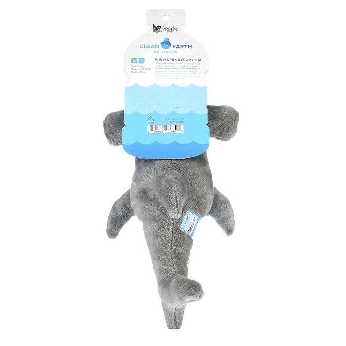 With the Clean Earth Plush Dog Toy Hammerhead Shark, you and your dog can help remove waste plastic from the environment … one toy at a time!