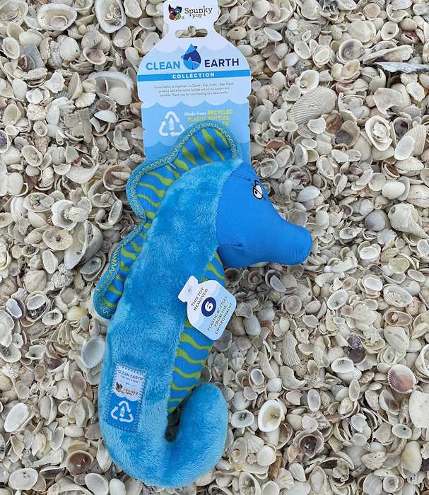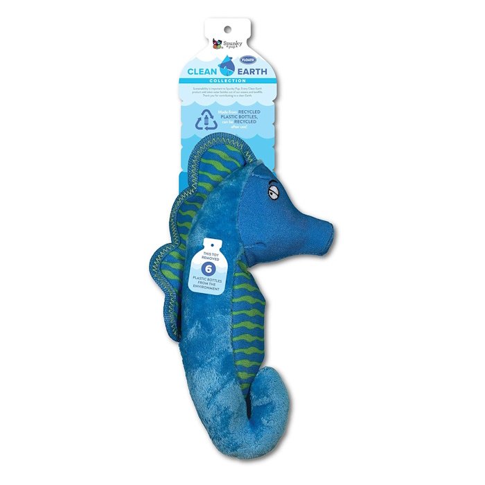 With the Clean Earth Plush Dog Toy Seahorse, you and your dog can help remove waste plastic from the environment … one toy at a time!
