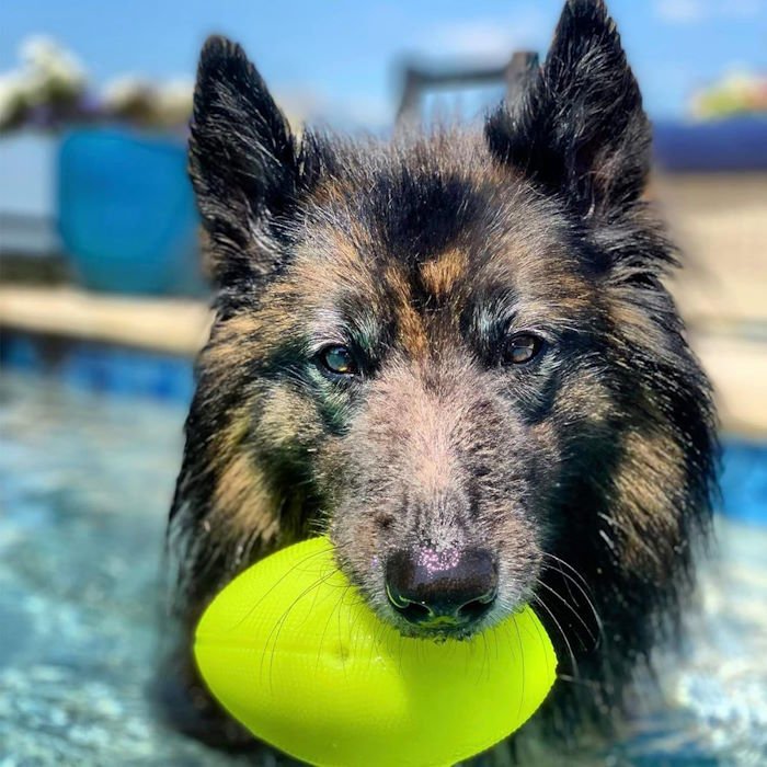 Squeak & Glow by Spunky Pup is easy to clean, waterproof and even floats. Great for the pool, beach, or lake.