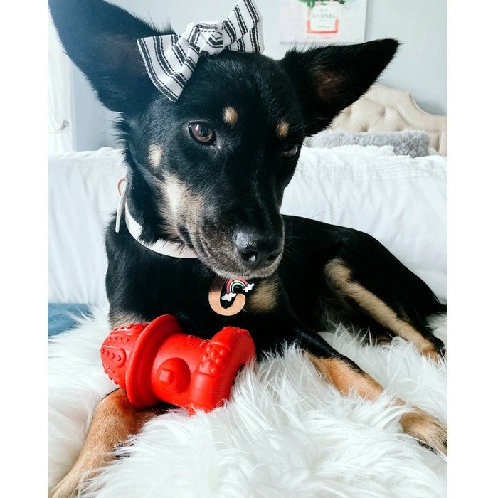 FILL WITH TREATS: Dogs love treats! Fill the centre with a healthy treat of your choice. For a cool snack, freeze it! The hydrant filled treat redirects their energy as they lick to get to the delicious reward and help to reduce anxiety and boredom.