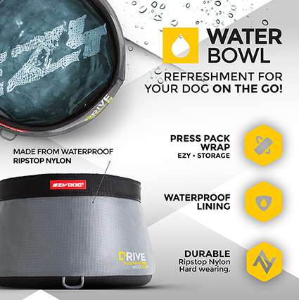 Made from waterproof Ripstop nylon, the DRIVE Takeaway water bowls are a compactable, travel-safe system that aim to provide refreshment for the dog on the go.