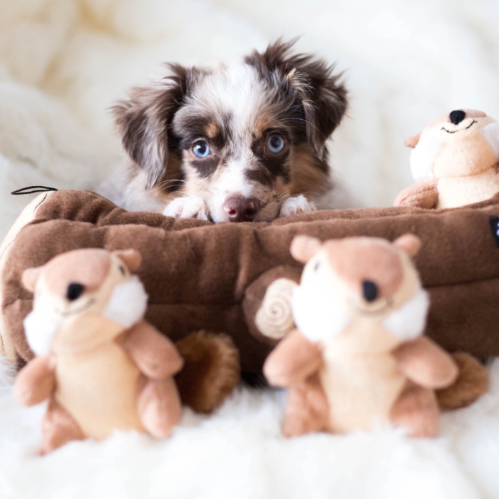 Featuring three squeaky chipmunks to stuff inside the large log plush toy, the Zippy Burrow Log Chipmunk gives your canine all-day fun, perfect for when you’re away from home. Stuff the chipmunks into the log, give it a squeeze to make the chipmunks squeak, and let your dog handle the rest.