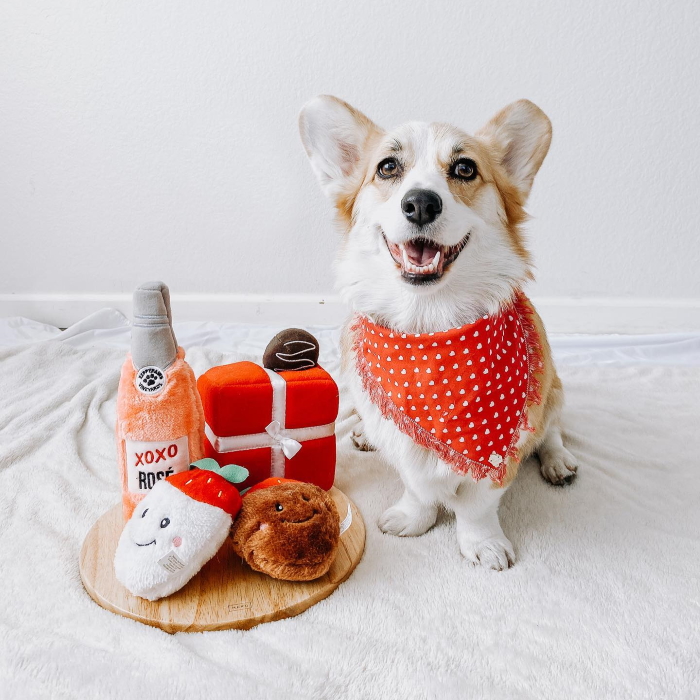 These eco-friendly Happy Hour Valentine’s Wine Crusherz dog toys from Zippy Paws are stuffed with a plastic bottle instead of fluffy filling. Plastic bottles create crunchy noises dogs love, and these dog toys are the perfect companions for your pets entertainment. Dogs love the crunchy noise of a water bottle!
