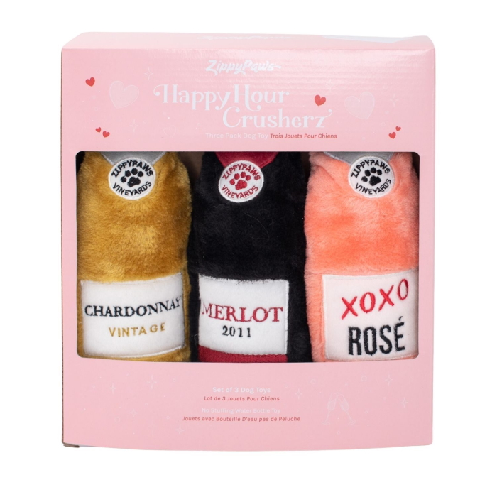 Happy Hour Valentine’s Wine Crusherz Dog Toy – 3 pack
